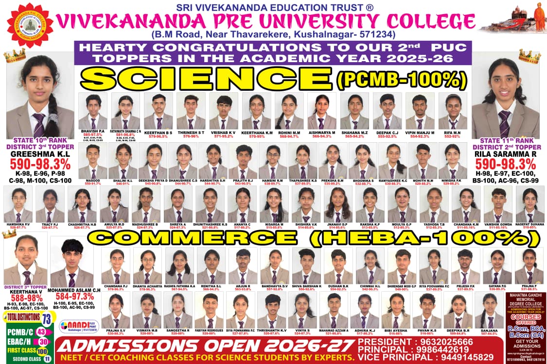 ಚನ್ನರಾಯಪಟ್ಟಣ ಜಿಲ್ಲೆಯಲ್ಲಿ ಸತತ ಎರಡನೇ ವರ್ಷವೂ ಪ್ರಥಮ ಸ್ಥಾನ ಪಡೆದ ಸಂಗೀತ ದಿನೇಶ್