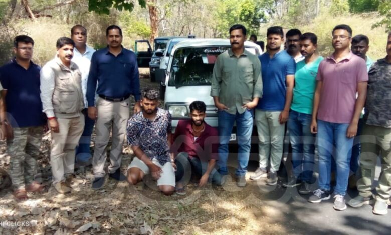 ಕುಶಾಲನಗರ, ಏ 12:  ಕುಶಾಲನಗರ ವಲಯ ವ್ಯಾಪ್ತಿಯ, ಮಾಲ್ದಾರೆ ಶಾಖೆಯ ಮಾಲ್ದಾರೆ ಗಸ್ತಿನ ಪಿರಿಯಾಪಟ್ಟಣ ಸಿದ್ಧಾಪುರ ರಸ್ತೆಯ ಅಂಚಿನಲ್ಲಿ ಒಂದು ಕಾಡುಕೋಣ (ಕಾಟಿ) ವನ್ನು ಗುಂಡಿಕ್ಕಿ ಕೊಂದು ಮಾಂಸವನ್ನಾಗಿ ಕತ್ತರಿಸಿಕೊಂಡು ಸಾಗಿಸಿದ್ದು ಕೃತ್ಯವೆಸಗಿದ ಆರೋಪಿಗಳು ಪರಾರಿಯಾದ ಸಂಬಂಧ ಪ್ರಕರಣವನ್ನು WLOR No: 05/2023-24, ದಿನಾಂಕ: 14/03/2024 ದಾಖಲಿಸಲಾಗಿದೆ. ದಿನಾಂಕ 24/03/2024 ರಂದು ಆನೆಚೌಕೂರು ವನ್ಯಜೀವಿ ವಲಯದಲ್ಲಿ ಪಿರಿಯಾಪಟ್ಟಣ-ಸಿದ್ದಾಪುರ ಮುಖ್ಯ ರಸ್ತೆಯಲ್ಲಿ ಕಾಡು ಕೋಣವನ್ನು ಹತ್ಯೆ ಮಾಡಿ ಮಾಂಸ ಮಾಡಿ ಸಾಗಿಸಿದ ಸಂಬಂಧ ಪ್ರಕರಣ ದಾಖಲಾಗಿರುತ್ತದೆ. ಸದರಿ ಎರಡೂ ಪ್ರಕರಣಗಳಲಿ, ತಲೆಮರೆಸಿಕೊಂಡಿರುವ ಆರೋಪಿಗಳನ್ನು ಪತ್ತೆಹಚ್ಚಲು  ಭಾಸ್ಕರ್. ಉಪ ಅರಣ್ಯ ಸಂರಕ್ಷಣಾಧಿಕಾರಿಗಳು, ಮಡಿಕೇರಿ ವಿಭಾಗ, ಮಡಿಕೇರಿ ರವರ ಮಾರ್ಗದರ್ಶನದಲ್ಲಿ ಕಾರ್ಯಪ್ರವೃತ್ತರಾಗಿ ದಿನಾಂಕ 11/04/2024 ರಂದು ಖಚಿತ ಮಾಹಿತಿಯ ಮೇರೆಗೆ 1) ಮಹಮ್ಮದ್ ಜಾಬೀರ್, ಪ್ರಾಯ 29 ವರ್ಷಗಳು, ತಂದೆ ಮೊಯಿದು, ಕುಂಜಿಲ ಗ್ರಾಮ, ಕಕ್ಕಬೆ ಅಂಚೆ, ನಾಪೋಕು ಹೋಬಳಿ, ಮಡಿಕೇರಿ ತಾಲೂಕು ಮತ್ತು 2) ನೌಫಲ್. ಪ್ರಾಯ 24 ವರ್ಷಗಳು, ತಂದೆ ಹಮೀದ್, ಕುಂಜಿಲ ಗ್ರಾಮ, ಕಕ್ಕಬೆ ಅಂಚೆ, ನಾಪೋಕು ಹೋಬಳಿ, ಮಡಿಕೇರಿ ತಾಲೂಕು ರವರನ್ನು ಬಂದಿಸುವಲ್ಲಿ ಅರಣ್ಯ ಇಲಾಖೆಯ ಸಿಬ್ಬಂಧಿಗಳು ಯಶಸ್ವಿಯಾಗಿರುತ್ತಾರೆ. ಆರೋಪಿಗಳನ್ನು ಬಂಧಿಸಿ ವಿರಾಜಪೇಟೆ ಘನ ನ್ಯಾಯಾಲಯಕ್ಕೆ ಹಾಜರುಪಡಿಸಲಾಗಿರುತ್ತದೆ. ಉಳಿದ 6 ಜನ ಆರೋಪಿಗಳು ತಲೆಮರೆಸಿಕೊಂಡಿದ್ದು, ಅವರ ಬಂಧನಕ್ಕೆ ತನಿಖೆ ನಡೆಯುತ್ತಿರುವುದಾಗಿದೆ.