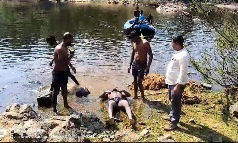 ದುಬಾರೆ ರಾಫ್ಟಿಂಗ್ ಸಿಬ್ಬಂದಿಗಳಿಂದ ನಡೆದ ಶೋಧ ಕಾರ್ಯ.