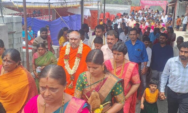 ವಾದ್ಯಗೋಷ್ಠಿ ಹಾಗೂ ಮಹಿಳೆಯರ ಪೂರ್ಣಕುಂಭದೊಂಡಿಗೆ ಶಂಭುನಾಥ ಸ್ವಾಮೀಜಿ ಅವರನ್ನು ಸ್ವಾಗತಿಸಿ ಬರಮಾಡಿಕೊಳ್ಳಲಾಯಿತು.