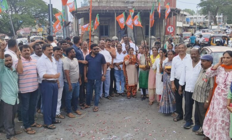 ಕುಶಾಲನಗರ ಗಣಪತಿ ದೇವಾಲಯ ಮುಂಭಾಗ ವಿಜಯೋತ್ಸವ ಆಚರಿಸಿದ ಪಕ್ಷದ ಮುಖಂಡರು, ಕಾರ್ಯಕರ್ತರು ಪಟಾಕಿ ಸಿಡಿಸಿ, ಸಿಹಿ ಹಂಚಿ, ನೃತ್ಯಮಾಡುವ ಮೂಲಕ ಸಂಭ್ರಮಿಸಿದರು.