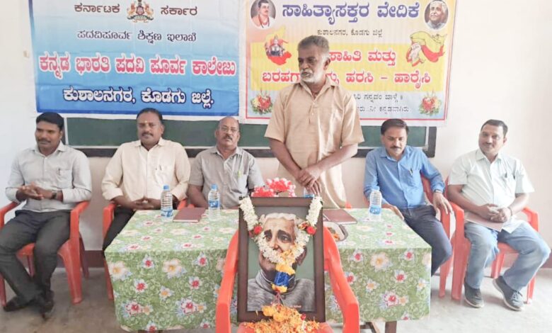 ಕುಶಾಲನಗರದ ಸಾಹಿತ್ಯಾಸಕ್ತರ ವೇದಿಕೆ ವತಿಯಿಂದ ಸ್ಥಳೀಯ ಕನ್ನಡ ಭಾರತಿ ಪಿಯು ಕಾಲೇಜಿನಲ್ಲಿ ಹಮ್ಮಿಕೊಂಡಿದ್ದ ” ಕುವೆಂಪು ಸಂಸ್ಮರಣೆ ” ಕಾರ್ಯಕ್ರಮ ಉದ್ಘಾಟಿಸಿ ಮಾತನಾಡಿದ ಅವರು,