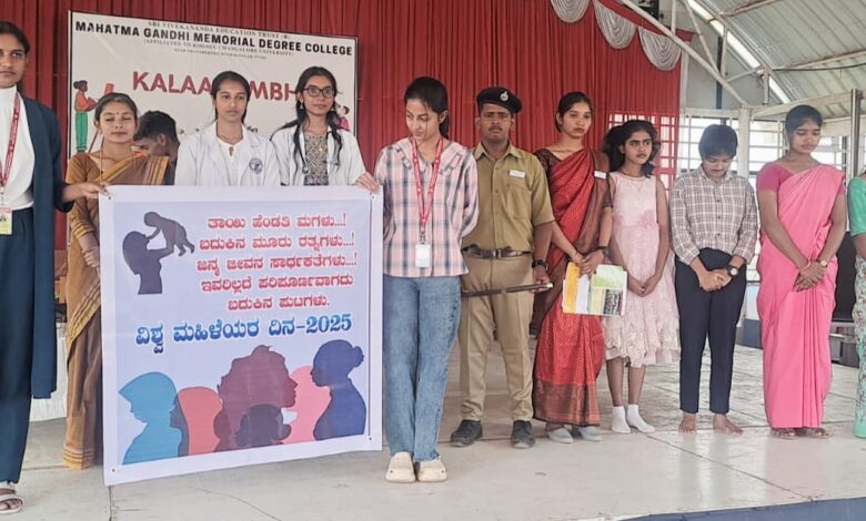 ಕುಶಾಲನಗರ, ಮಾ 08 : ಅಂತರ್ರಾಷ್ಟ್ರೀಯ ಮಹಿಳಾ ದಿನದ ಅಂಗವಾಗಿ ಕುಶಾಲನಗರದ ಮಹಾತ್ಮ ಗಾಂಧಿ ಪದವಿ ಕಾಲೇಜಿನಲ್ಲಿ ವಿದ್ಯಾರ್ಥಿಗಳಿಂದ ಮಹಿಳೆಯರಲ್ಲಿ ಜಾಗೃತಿ ಮೂಡಿಸುವ ರೂಪಕಗಳ ಮೂಲಕ ವಿಭಿನ್ನವಾಗಿ ಆಚರಿಸಲಾಯಿತು.