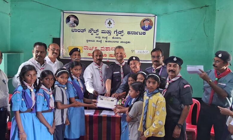 ಕುಶಾಲನಗರ, ಆ.24:ಭಾರತ್ ಸ್ಕೌಟ್ಸ್ ಮತ್ತು ಗೈಡ್ಸ್ ನ ಕೊಡಗು ಜಿಲ್ಲಾ ಸಂಸ್ಥೆ ಹಾಗೂ ಕುಶಾಲನಗರ ಸ್ಥಳೀಯ ಸಂಸ್ಥೆಯ ವತಿಯಿಂದ ಕುಶಾಲನಗರ ತಾಲ್ಲೂಕಿನ ಮುಳ್ಳುಸೋಗೆ ಸರ್ಕಾರಿ ಹಿರಿಯ ಪ್ರಾಥಮಿಕ ಪಾಠ ಶಾಲೆಯ ಆವರಣದಲ್ಲಿ ಶನಿವಾರ ( ಆ.23 ರಂದು ಸ್ಕೌಟ್ಸ್ ಮತ್ತು ಗೈಡ್ಸ್ ಹಾಗೂ ಹಾಗೂ ಕಬ್, ಬುಲ್ ಬುಲ್ ಮಕ್ಕಳಿಗೆ ದೇಶಭಕ್ತಿ ಗೀತೆಗಳ ತಾಲ್ಲೂಕು ಮಟ್ಟದ ಗೀತ ಗಾಯನ ಸ್ಪರ್ಧೆಯನ್ನು ಏರ್ಪಡಿಸಲಾಗಿತ್ತು.