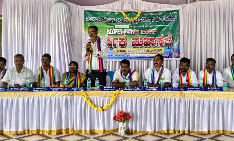 ತೊರೆನೂರು : ಪ್ರಾಥಮಿಕ ಕೃಷಿ ಪತ್ತಿನ ಸಹಕಾರ ಸಂಘದ ಮಹಾಸಭೆ. ಸದಸ್ಯರಿಗೆ ರೂ.19 ಕೋಟಿ ಸಾಲ ವಿತರಣೆ:ರೂ.16.10 ಲಕ್ಷ ನಿವ್ವಳ ಲಾಭ
