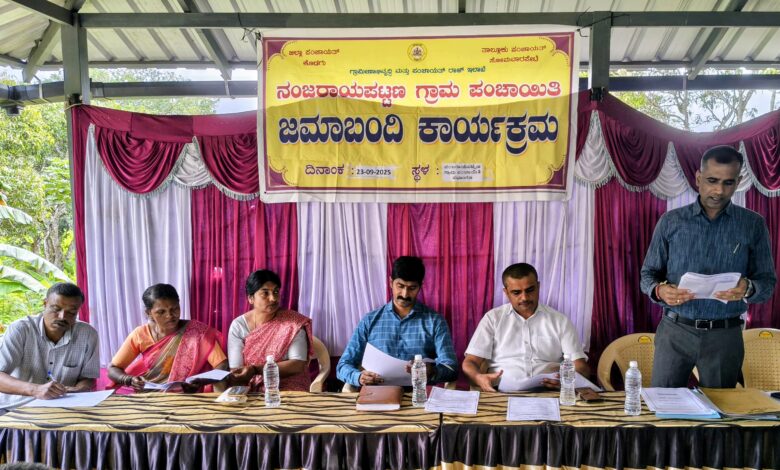 ಜಮಾಬಂದಿ ಸಭೆಯು ಗ್ರಾಮ ಪಂಚಾಯಿತಿ ಕಚೇರಿಯ ಮೇಲ್ಭಾಗದ ಸಭಾಂಗಣದಲ್ಲಿ ತಾಲ್ಲೂಕು ಸಹಾಯಕ ನಿರ್ದೇಶಕರಾದ ಪಿ.ವಿ. ಶ್ರೀನಿವಾಸ್ ನವರ ಅಧ್ಯಕ್ಷತೆಯಲ್ಲಿ ಜರುಗಿತ್ತು. ,