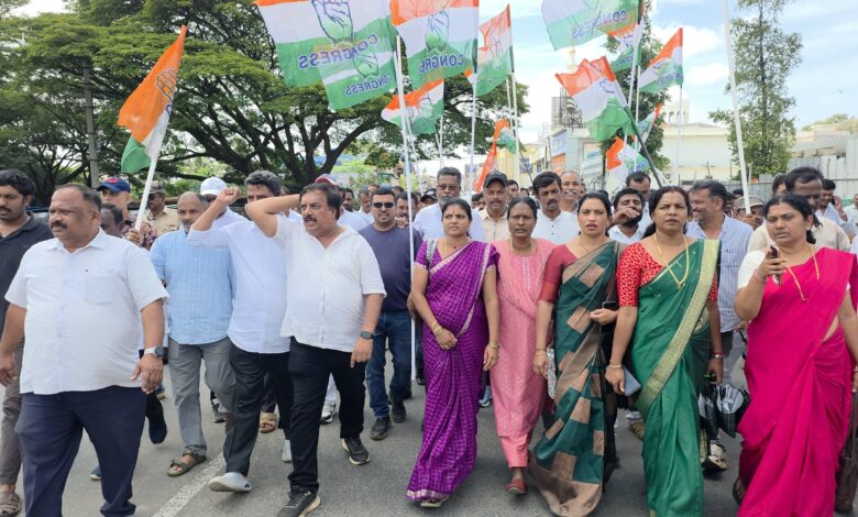 ಕುಶಾಲನಗರ ಬ್ಲಾಕ್ ಕಾಂಗ್ರೆಸ್ ಅಧ್ಯಕ್ಷ ವಿ.ಪಿ. ಶಶಿಧರ್ ನೇತೃತ್ವದಲ್ಲಿ ಪಕ್ಷದ ಕಚೇರಿಯಿಂದ ಹೊರಟ ಕಾರ್ಯಕರ್ತರು ಕುಶಾಲನಗರ ಗಣಪತಿ ದೇವಾಲಯದ ಮುಂಭಾಗ ಸೇರಿ ಮಾನವ ಸರಪಳಿ ರಚಿಸಿ ಪಕ್ಷ ಮತ್ತು ಶಾಸಕ ಮಂತರ್ ಗೌಡ ಸೇರಿದಂತೆ ಪಕ್ಷದ ನಾಯಕರ ಪರ ಘೋಷಣೆ ಕೂಗಿದರು.