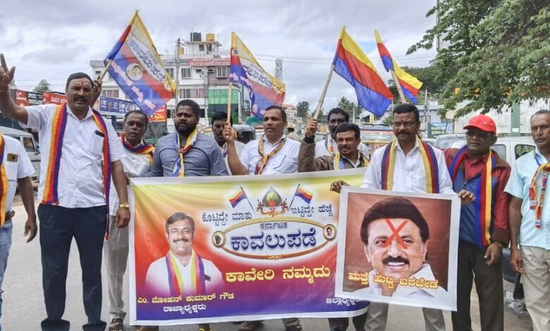ತಮಿಳುನಾಡಿಗೆ ನೀರು ಹರಿಸುವುದನ್ನು ಖಂಡಿಸಿ‌ ಕರ್ನಾಟಕ ಕಾವಲುಪಡೆ ಪ್ರತಿಭಟನೆ.