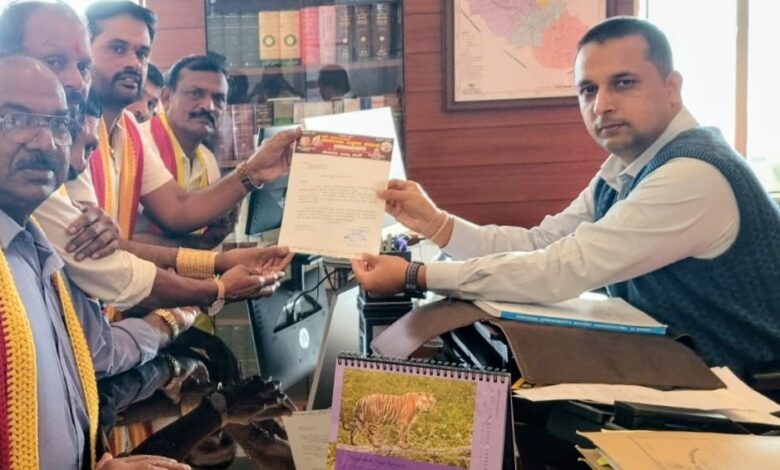 ಕುಶಾಲನಗರ, ಡಿ 22: ಸರಕಾರದ ನಿಯಮಾನುಸಾರ ನಾಮಫಲಗಳಲ್ಲಿ ಕನ್ನಡ ಭಾಷೆಗೆ ಹೆಚ್ಚಿನ ಪ್ರಾಮುಖ್ಯತೆ ನೀಡುವಂತೆ ಒತ್ತಾಯಿಸಿ ಹೆಚ್.ಶಿವರಾಮೇಗೌಡರ ಕರ್ನಾಟಕ ರಕ್ಷಣಾ ವೇದಿಕೆಯ ಜಿಲ್ಲಾಧ್ಯಕ್ಷ ಬಿ.ಎ.ದಿನೇಶ್ ನೇತೃತ್ವದಲ್ಲಿ ಕೊಡಗು ಜಿಲ್ಲಾಧಿಕಾರಿಗಳಿಗೆ ಮನವಿ ಸಲ್ಲಿಸಲಾಯಿತು.