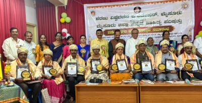 ಕುಶಾಲನಗರ, ಡಿ 28: ಮೈಸೂರು ಶರಣು ವಿಶ್ವವಚನ ಫೌಂಡೇಶನ್ ವತಿಯಿಂದ ನೀಡಲ್ಪಡುವ ರಾಜ್ಯಮಟ್ಟದ ಚಿನ್ಮಯಿ ಜ್ಞಾನಿ ಶಿಕ್ಷಕ ಪ್ರಶಸ್ತಿಗೆ ಶಿಕ್ಷಕ ದಂಪತಿಗಳು ಭಾಜನರಾಗಿ ಮೈಸೂರಿನಲ್ಲಿ ನಡೆದ ಸಮಾರಂಭದಲ್ಲಿ ಪ್ರಶಸ್ತಿ ಸ್ವೀಕಾರ ಮಾಡಿದರು.