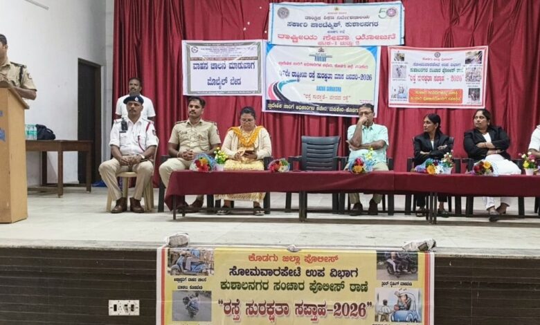 ಕುಶಾಲನಗರ, ಜ 13: ಕೊಡಗು ಪ್ರಾದೇಶಿಕ ಸಾರಿಗೆ ಇಲಾಖೆ ಹಾಗೂ ಜಿಲ್ಲಾ ಪೊಲೀಸ್ ಇಲಾಖೆ ಮತ್ತು ಕಾನೂನು ಸೇವಾ ಪ್ರಾಧಿಕಾರ ಸಂಯುಕ್ತಾಶ್ರಯದಲ್ಲಿ ಮಾದಾಪಟ್ಟಣದ ಸರ್ಕಾರಿ ಪಾಲಿಟೆಕ್ನಿಕ್ ಕಾಲೇಜಿನಲ್ಲಿ ರಸ್ತೆ ಸುರಕ್ಷಾ ಸಪ್ತಾಹ ಕಾರ್ಯಕ್ರಮ ಹಮ್ಮಿಕೊಳ್ಳಲಾಗಿತ್ತು. ಕಾಲೇಜು