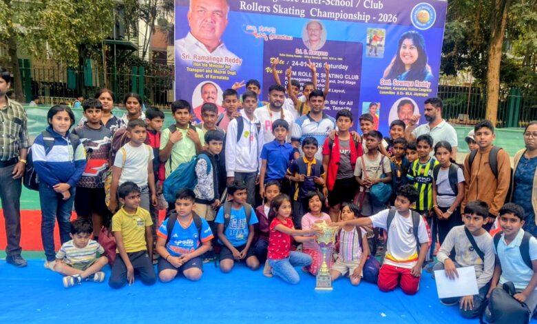 ಕುಶಾಲನಗರ ಜ 27: ಬೆಂಗಳೂರಿನ ಬಿಟಿಎಂ ಲೇಔಟ್ ನ ಕೆಂಪೇಗೌಡ ಮೈದಾನದಲ್ಲಿ ಬಿಟಿಎಂ ರೋಲರ್ ಸ್ಕೇಟಿಂಗ್ ಕ್ಲಬ್ ವತಿಯಿಂದ ನಡೆದ ರೋಲರ್ ಸ್ಕೇಟಿಂಗ್ ಚಾಂಪಿಯನ್ಷಿಪ್ ನಲ್ಲಿ ಭಾಗವಹಿಸಿದ ಏಂಜಲ್ಸ್ ವಿಂಗ್ಸ್ ಸ್ಕೇಟಿಂಗ್ ಅಕಾಡೆಮಿಯ ಶನಿವಾರ ಸಂತೆ ಸೀಕ್ರೆಟ್ ಹಾರ್ಟ್ ಶಾಲೆಯ 33 ವಿದ್ಯಾರ್ಥಿಗಳು, ಶುಂಠಿಕೊಪ್ಪ ಸಂತ ಮೇರಿ ಶಾಲೆಯ 6 ಮಕ್ಕಳು, ಮಡಿಕೇರಿಯ ಶಾಖೆಯ 5 ವಿದ್ಯಾರ್ಥಿಗಳು ಭಾಗವಹಿಸಿ ಪ್ರತಿಭೆ ಪ್ರದರ್ಶಿಸಿ 9 ಚಿನ್ನಣ 15 ಬೆಳ್ಳಿ, 11 ಕಂಚಿನ ಪದಕಗಳನ್ನು ತಮ್ಮದಾಗಿಸಿಕೊಂಡಿರುತ್ತಾರೆ. ಇದರೊಂದಿಗೆ ಏಂಜಲ್ಸ್ ವಿಂಗ್ಸ್ ಸ್ಕೇಟಿಂಗ್ ಅಕಾಡೆಮಿ ಗೆ ಉನ್ನತ ಸ್ಕೇಟಿಂಗ್ ಅಕಾಡೆಮಿ ಎಂಬ ಬಿರುದನ್ನು ನೀಡುವ ಮೂಲಕ ಓವರಾಲ್ ಚಾಂಪಿಯನ್ ಪಟ್ಟಕ್ಕೆ ಭಾಜನರಾದರು. ಏಂಜಲ್ಸ್ ವಿಂಗ್ ಸ್ಕೇಟಿಂಗ್ ಅಕಾಡೆಮಿ ಯ ಕೋಚ್ ಅದಂತಹ ಅನೂಪ್ ಡಿಸೋಜಾ ರವರಿಗೆ ಗೌರವಾರ್ಥ ಸನ್ಮಾನಿಸಿ ಗೌರವಿಸಲಾಯಿತು.