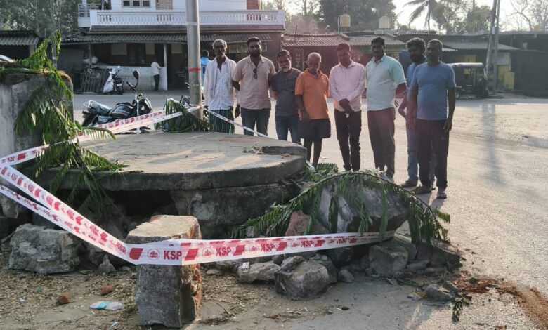 ನಾಲ್ಕೈದು ದಶಕಗಳ ಇತಿಹಾಸವಿರುವ ಬಾವಿಕಟ್ಟೆಗೆ ಆಂದ್ರಪ್ರದೇಶದ ಕಾಫಿ ಸಾಗಿಸುತ್ತಿದ್ದ ಲಾರಿ ಡಿಕ್ಕಿಪಡಿಸಿದೆ. ಚಾಲಕ ಪಾನಮತ್ತನಾಗಿ ವಾಹನ ಚಲಾಯಿಸಿದ ಹಿನ್ನಲೆ ಅಪಘಾತ ಸಂಭವಿಸಿದ್ದು, ಸ್ಥಳದಲ್ಲಿ ಯಾರೂ ಇಲ್ಲದ ಕಾರಣ ಯಾವುದೇ ಅನಾಹುತ ಸಂಭವಿಸಿರುವುದಿಲ್ಲ. ಈ ಘಟನೆ ಬಗ್ಗೆ ಗ್ರಾಮಸ್ಥರು ಪಂಚಾಯಿತಿ ಸದಸ್ಯರಾದ ಕೆ.ಬಿ.ಶಂಶುದ್ಧೀನ್ ಅವರಿಗೆ ಮಾಹಿತಿ ತಿಳಿಸಿದ್ದು, ಕೂಡಲೇ ಸ್ಥಳಕ್ಕೆ ಭೇಟಿ ನೀಡಿ ಪಿಡಿಓ ಗೆ ಮಾಹಿತಿ ನೀಡಿ ದೂರು ನೀಡುವಂತೆ ತಿಳಿಸಿದರು. ನಂತರ ಗ್ರಾಮಸ್ಥರಾದ ತಂಬಿ, ಕಾರ್ತಿಕ್, ಹರೀಶ್, ರಫೀಕ್, ಗಣೇಶ್ ಹಾಗೂ ಕೆ.ಬಿ.ಶಂಶುದ್ಧೀನ್ ಅವರು ಕುಶಾಲನಗರ ಗ್ರಾಮಾಂತರ ಪೊಲೀಸ್ ಠಾಣೆಗೆ ಭೇಟಿ ನೀಡಿ ಪೊಲೀಸರು ಘಟನೆ ಬಗ್ಗೆ ಮಾಹಿತಿ ನೀಡಿದರು. ನಂತರ ಪಿಡಿಓ ಸಂತೋಷ್ ಸ್ಥಳ ಪರಿಶೀಲನೆ ನಡೆಸಿ ಮುಂದಿನ ಕ್ರಮ ಕೈಗೊಂಡಿದ್ದಾರೆ.