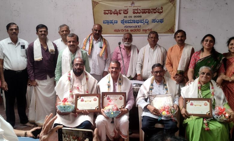 ಕುಶಾಲನಗರ, ಜ 31: ಕುಶಾಲನಗರ ಬ್ರಾಹ್ಮಣ ಕ್ಷೇಮಾಭಿವೃದ್ಧಿ ಸಂಘದ ವಾರ್ಷಿಕ ಮಹಾಸಭೆ ಸಂಘದ ಕಟ್ಟಡದಲ್ಲಿ ನಡೆಯಿತು. ಸಂಘದ ಅಧ್ಯಕ್ಷ ಕೆ .ಎಸ್. ರಾಜಶೇಖರ್ ರವರ ಅಧ್ಯಕ್ಷತೆಯಲ್ಲಿ ನಡೆದ ಸಭೆಯಲ್ಲಿ, ಆರಂಭದಲ್ಲಿ ಸಂಘದ ನಿರ್ದೇಶಕ ಶ್ರೀಹರ್ಷ ಕಳೆದ ವಾರ್ಷಿಕ ಸಾಲಿನ ವರದಿಯನ್ನೋದಿದರೆ ಖಜಾಂಚಿ ಶ್ರೀದೇವಿ ವೆಂಕಟರಮಣರಾವ್ ಲೆಕ್ಕಪತ್ರ ವರದಿ ಮಂಡಿಸಿದರು.