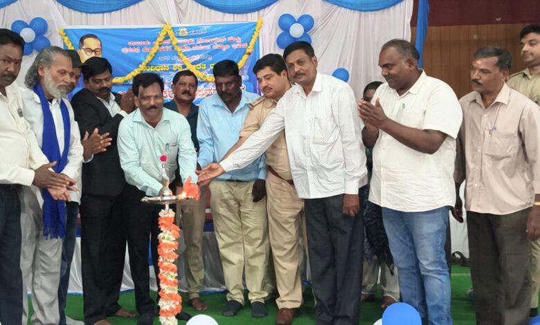 ವೇದಿಕೆ ಸಮಾರಂಭಕ್ಕೂ ಮುನ್ನ ತೆರೆದ ವಾಹನದಲ್ಲಿ ಅಂಬೇಡ್ಕರ್ ಅವರ ಭಾವಚಿತ್ರ ಮೆರವಣಿಗೆ ನಡೆಸಲಾಯಿತು.
