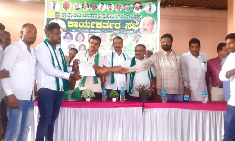 ಕುಶಾಲನಗರ, ಅ 11: ಜಾತ್ಯತೀತ ಜನತಾದಳದ ಕುಶಾಲನಗರ ತಾಲೂಕು ಘಟಕದ ಕಾರ್ಯಕರ್ತರ ಸಭೆ ಕುಶಾಲನಗರದ ಗೌಡ ಸಮಾಜದಲ್ಲಿ ನಡೆಯಿತು.