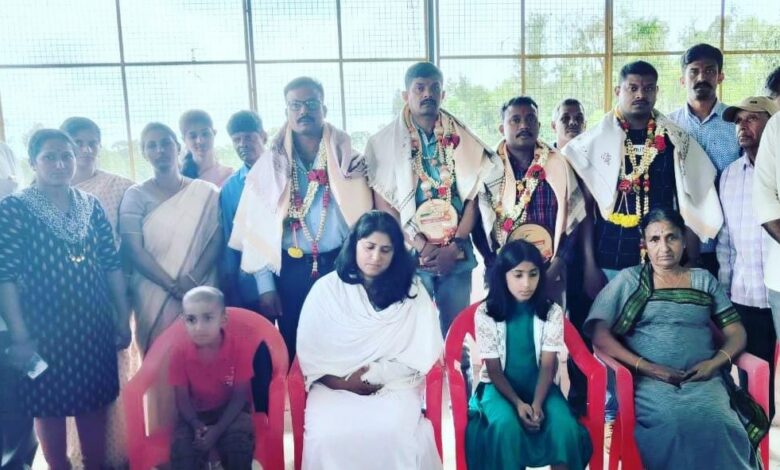 ನಾಲ್ವರು ಯೋಧರಾದ ಸುಬೇದಾರ್ ಮಣಿ, ಹವಲ್ದಾರ್ ಪ್ರಸಾದ್, ಹವಲ್ದಾರ್ ಕರುಂಬಯ್ಯ, ನಾಯಕ್ ರಾಹುಲ್ ಅವರುಗಳು ಪಂಚಾಯಿತಿ ಸಭಾಂಗಣಕ್ಕೆ ಆಗಮಿಸುತ್ತಿದ್ದಂತೆ ಎಲ್ಲರ ಹಣೆಗೆ ಜಿಪಂ ಮಾಜಿ ಉಪಾಧ್ಯಕ್ಷೆ ಲೋಕೇಶ್ವರಿ ಗೋಪಾಲ್ ಮತ್ತು ಗ್ರಾಮಸ್ಥರು ತಿಲಕವನ್ನಿಟ್ಟು ಬರಮಾಡಿಕೊಂಡರು. ಸನ್ಮಾನ ಸ್ವೀಕರಿಸಿದ ನಂತರ ಗದ್ಗದಿತರಾಗಿದ್ದ ಸುಬೇದಾರ್ ಮಣಿ ಮಾತನಾಡಿ, ಯೋಧ ಪರಂಪರೆಯ ನಾಡಾದ ಕೊಡಗಿನಲ್ಲಿ ಸೇನೆಯಲ್ಲಿ ಕರ್ತವ್ಯ ನಿರ್ವಹಿಸುವವರಿಗೆ ದೊರಕುವ ಗೌರವದ ಬಗ್ಗೆ ಮೆಚ್ಚುಗೆ ವ್ಯಕ್ತಪಡಿಸಿದರು. ಸಮಾರಂಭದಲ್ಲಿ ಜಿಲ್ಲಾ ಪಂಚಾಯಿತಿ ಮಾಜಿ ಉಪಾಧ್ಯಕ್ಷೆ ಲೋಕೇಶ್ವರಿ ಗೋಪಾಲ್ ಮತ್ತು ಎಂ.ಪಿ.ಗೋಪಾಲ್ ಅವರು ಸೈನಿಕರನ್ನು ವೈಯಕ್ತಿಕವಾಗಿ ಸನ್ಮಾನಿಸಿದರು.