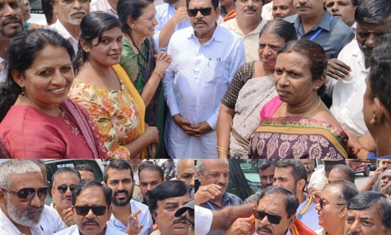 ಗೃಹ ಸಚಿವರನ್ನು ಆತ್ಮೀಯವಾಗಿ ಬರಮಾಡಿಕೊಂಡ ಕಾಂಗ್ರೆಸಿಗರು.