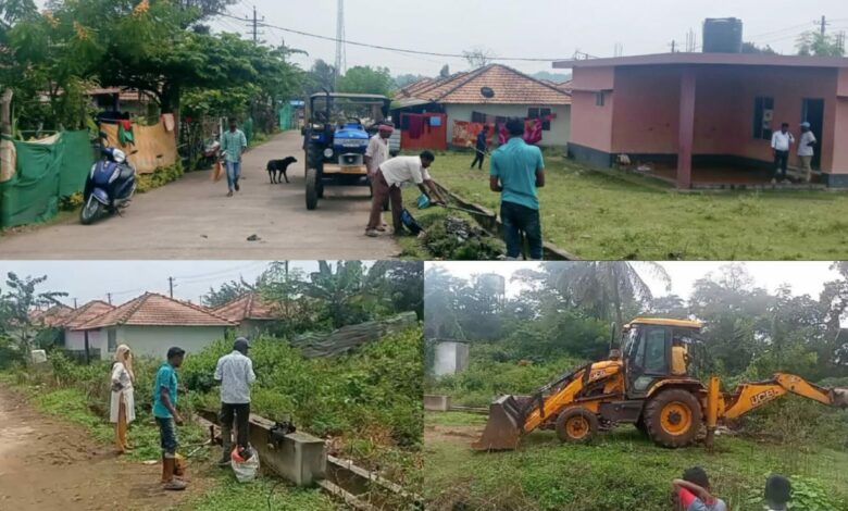 ಈ ಹಿನ್ನಲೆಯಲ್ಲಿ ಗ್ರಾಪಂ ಪಿಡಿಒ ಮಂಜುಳಾ ಅವರು ಖುದ್ದು ಶಿಬಿರಕ್ಕೆ ಭೇಟಿ ನೀಡಿ ಪರಿಶೀಲಿಸಿ ಜೆಸಿಬಿ ಮೂಲಕ ಕಾಡು ಗಿಡಗಳನ್ನು ತೆರವು ಗೊಳಿಸಿ, ಚರಂಡಿ ಸ್ವಚ್ಚತಾ ಕಾರ್ಯಗಳಿಗೆ ಚಾಲನೆ ನೀಡಿದ್ದಾರೆ.