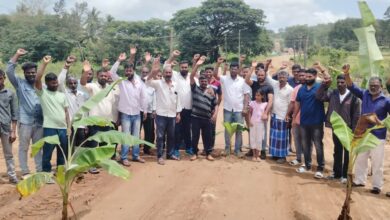 ಪೂರ್ಣಗೊಳ್ಳದ ರಸ್ತೆ ಕಾಮಗಾರಿ: ಬಾಳೆ ಗಿಡ ನೆಟ್ಟು ಪ್ರತಿಭಟನೆ