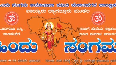 ಕುಶಾಲನಗರ, ಜ 31: ಕುಶಾಲನಗರ ತಾಲೂಕು ಹಿಂದೂ ಸಂಗಮ ಆಯೋಜನ ಸಮಿತಿಯ ವಾಲ್ನೂರು ತ್ಯಾಗತ್ತೂರು ಮಂಡಲದ ಆಶ್ರಯದಲ್ಲಿ ಭಾನುವಾರ ಹಿಂದೂ ಸಂಗಮ ಶೋಭಾಯಾತ್ರೆ ನಡೆಯಿತು. ಪ್ರಗತಿಪರ ಕೃಷಿ…