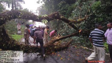 ಭಾಗಮಂಡಲ – ತಲಕಾವೇರಿ ರಸ್ತೆಗೆ ಅಡ್ಡಲಾಗಿ ಮರ ಪತನ