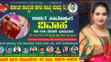 ಕುಶಾಲನಗರ, ಮಾ 31: ಕರ್ನಾಟಕ ಸಾಂಸ್ಕೃತಿಕ ಹಾಗೂ ಸಾಹಿತ್ಯ ಪರಿಷತ್ತು ವತಿಯಿಂದ ಏಪ್ರಿಲ್ 26 ರಂದು ಭಾನುವಾರ ಮೈಸೂರಿನಲ್ಲಿ ಉಚಿತ ಸಾಮೂಹಿಕ ವಿವಾಹ ಕಾರ್ಯಕ್ರಮ ಹಮ್ಮಿಕೊಳ್ಳಲಾಗಿದೆ ಎಂದು…