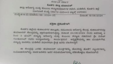 ಜೂ 24: ಕುಶಾಲನಗರಕ್ಕೆ ಆರೋಗ್ಯ ಮತ್ತು ಕುಟುಂಬ ಕಲ್ಯಾಣ ಸಚಿವ ದಿನೇಶ್ ಗುಂಡುರಾವ್ ಭೇಟಿ