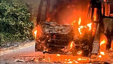 ಕೇರಳಕ್ಕೆ ತೆರಳುತ್ತಿದ್ದ ಬಸ್ ಬೆಂಕಿಗಾಹುತಿ