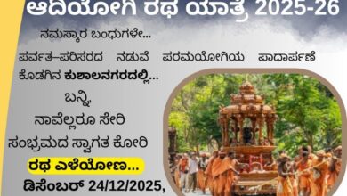 ಕುಶಾಲನಗರ, ಡಿ 19: ಶಭರಿಮಲೆಯಲ್ಲಿ ದಿನಾಂಕ 14.1.2026 ರಂದು ನಡೆಯುವ ಸಾಕ್ಷಾತ್ ಮಣಿಕಂಠನ ರೂಪವೆಂದು ನಂಬಿರುವ ಅಯ್ಯಪ್ಪ ಭಕ್ತರು ವೀಕ್ಷಿಸುವ ಮಕರ ಜ್ಯೋತಿ ದರ್ಶನ ಮತ್ತು ದೇವರ…