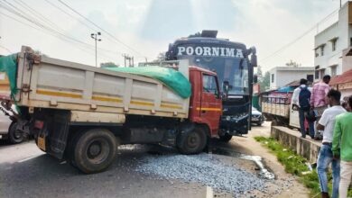 ಮಿನಿ ಟಿಪ್ಪರ್-ಪೂರ್ಣಿಮ ಟ್ರಾವೆಲ್ಸ್ ಮುಖಾಮುಖಿ ಡಿಕ್ಕಿ