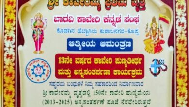 ಕುಶಾಲನಗರ, ಅ 06: ಅಖಿಲ ಭಾರತ ವೀರಶೈವ ಲಿಂಗಾಯುತ ಮಹಾಸಭಾದ ಕೊಡಗು ಜಿಲ್ಲಾ ಘಟಕ ಆಶ್ರಯದಲ್ಲಿ 2023-24 ಮತ್ತು 2024-25ನೇ ಸಾಲಿನ ಪ್ರತಿಭಾ ಪುರಸ್ಕಾರ ಮತ್ತು ಜಿಲ್ಲಾ…